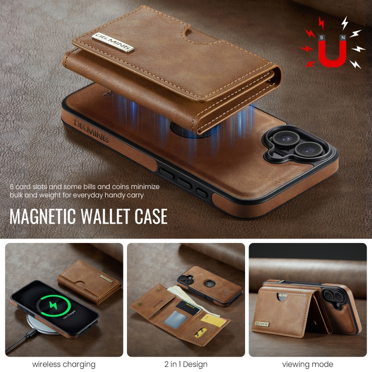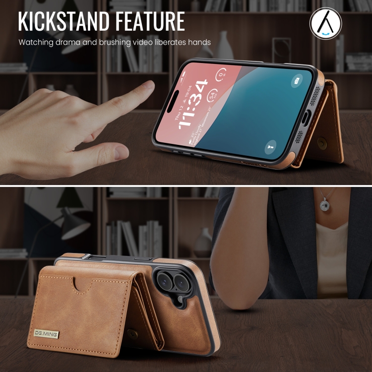 Funda de Cuero Extraíble para iPhone 16 Serie Dg.Ming M6 con Tarjetero Rfid de Tres Pliegues (Marrón)