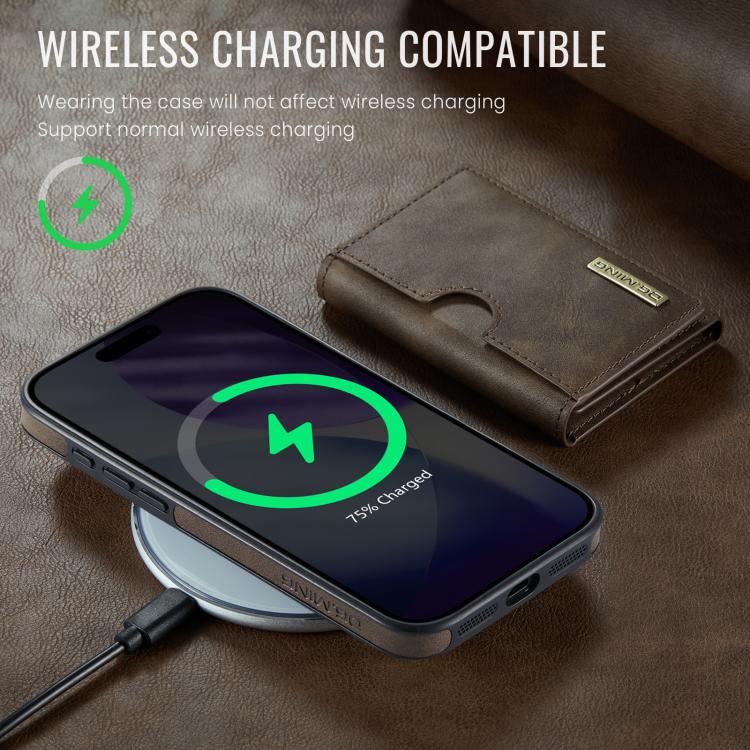 Funda de cuero extraíble para iPhone 17 Pro, serie DG.MING M6, con tarjetero RFID de tres pliegues (café)
