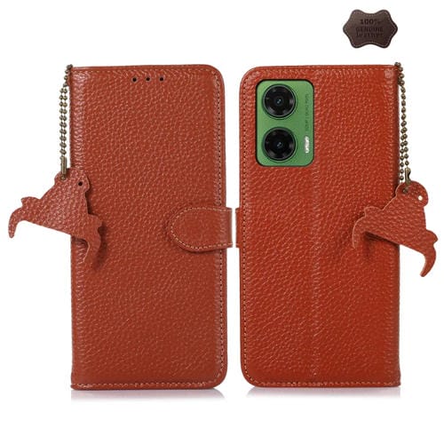 Funda Cuero Genuino Textura Lichi Rfid para Motorola Moto G35 (Café)