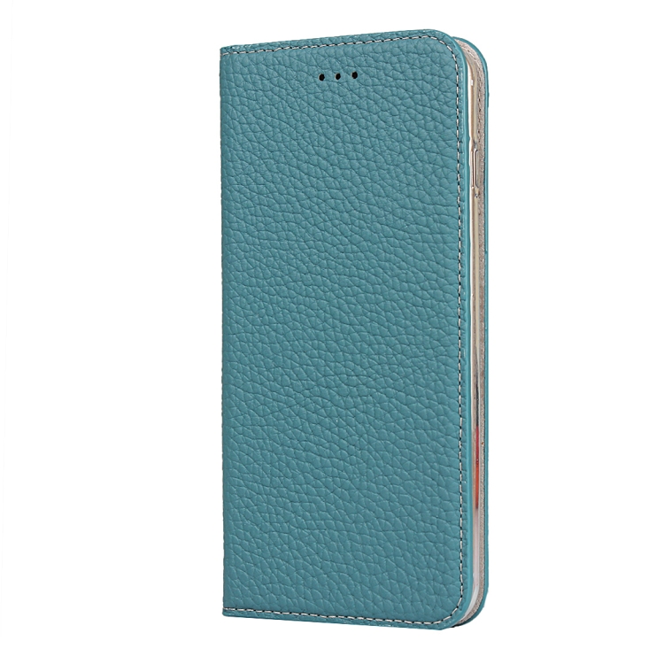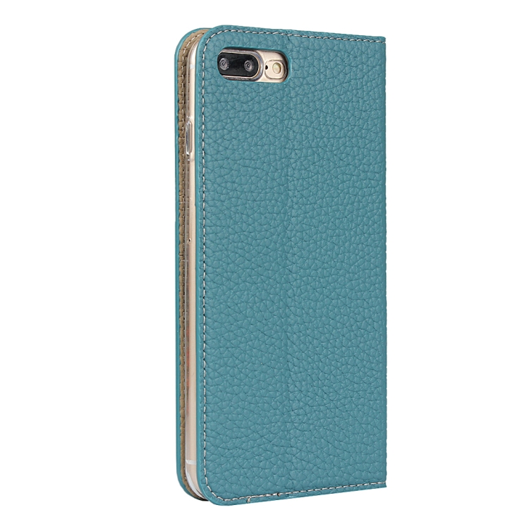 Funda de Cuero Genuino de Litchi para iPhone 7 Plus y 8 Plus (Sky Blue)