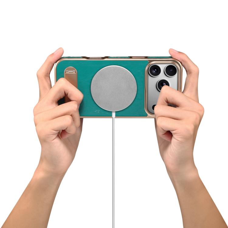 Funda de cuero genuino MagSafe Denior A25 para iPhone 17 Pro Max con soporte (azul)