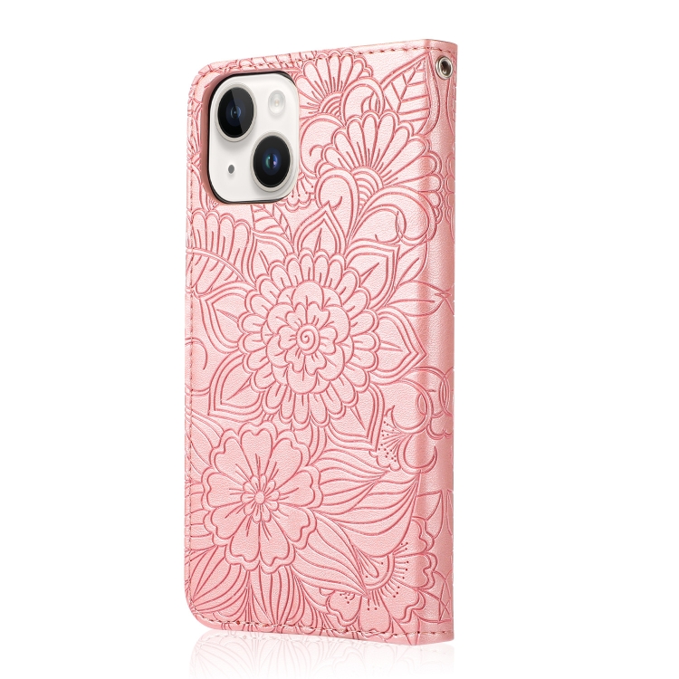 Funda de Cuero Horizontal Skin Feel para iPhone 13 Mini con Girasol en Relieve (Oro Rosa)