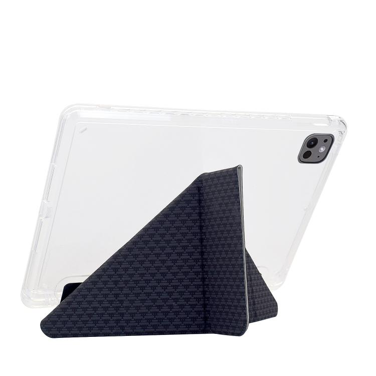 Funda de cuero inteligente con textura piramidal plegable en Y para iPad Air 13 (2024/2025) y Pro 12.9 (negro)