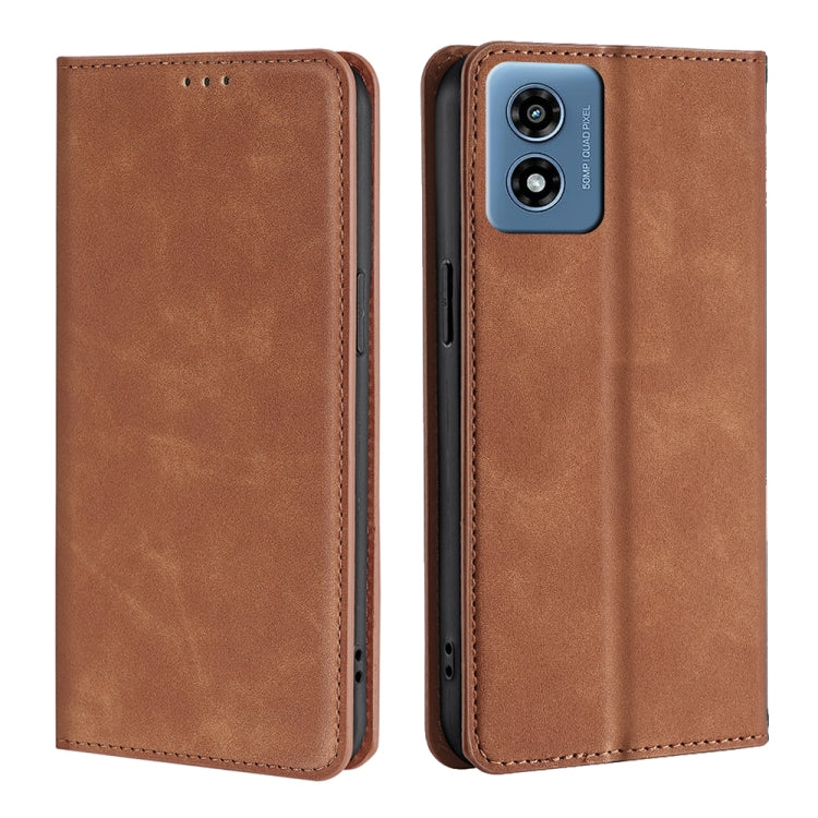 Funda de Cuero Magnética con Tacto de Piel para Motorola Moto G 5G (2024) (Marrón Claro)