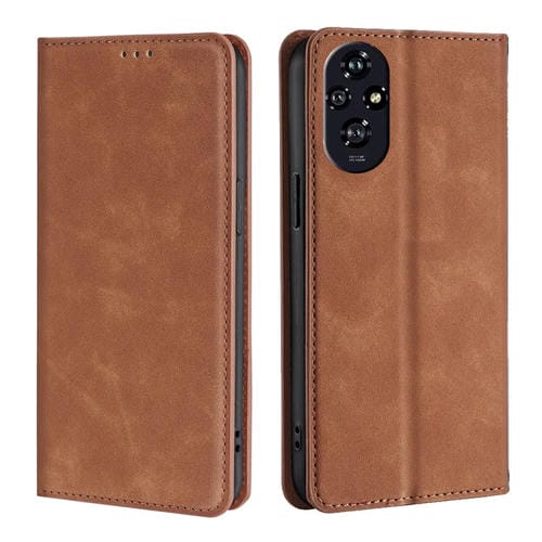 Funda de Cuero Magnética con Tacto de Piel para Honor 200 5G (Marrón Claro)