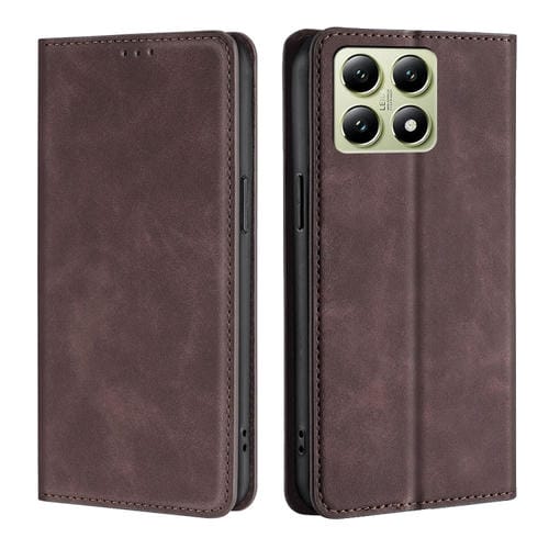 Funda De Cuero Magnética Con Tacto De Piel Para Teléfono Xiaomi 14T 5G (Marrón Oscuro)