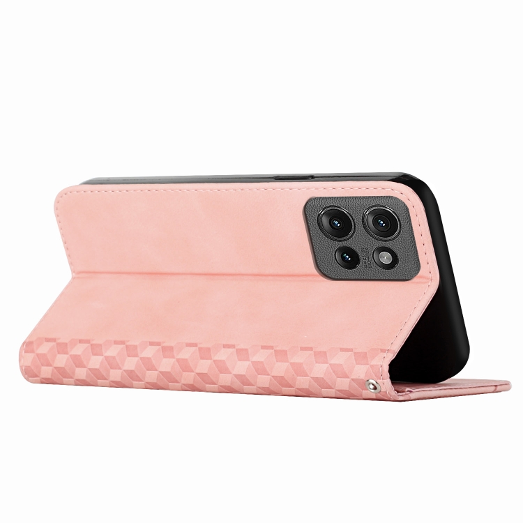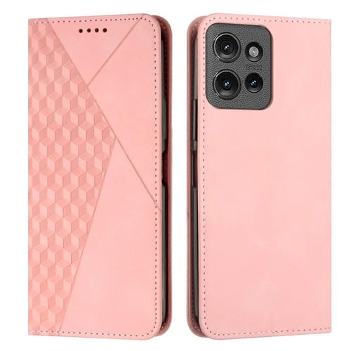Funda de Cuero Magnética con Textura de Diamante para Motorola Edge 50 (Oro Rosa)
