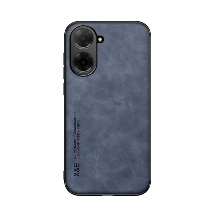 Funda de cuero magnética con textura de piel para Redmi A5 4G (171,7 mm) y Xiaomi Poco C71 (azul)