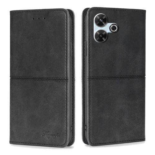 Funda de Cuero Magnética con Textura de Vaca para Redmi 13 4G (Negra)