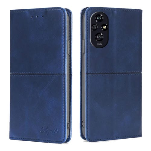 Funda de Cuero Magnética con Textura de Vaca para Honor 200 5G (Azul)