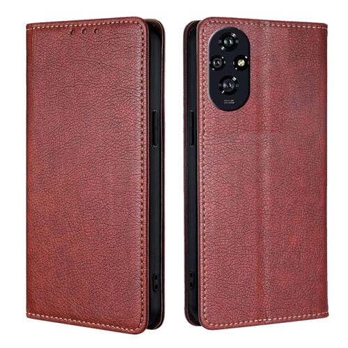 Funda de Cuero Magnética para Honor 200 5G con Acabado Brillante y Aceite Sólido (Marrón)