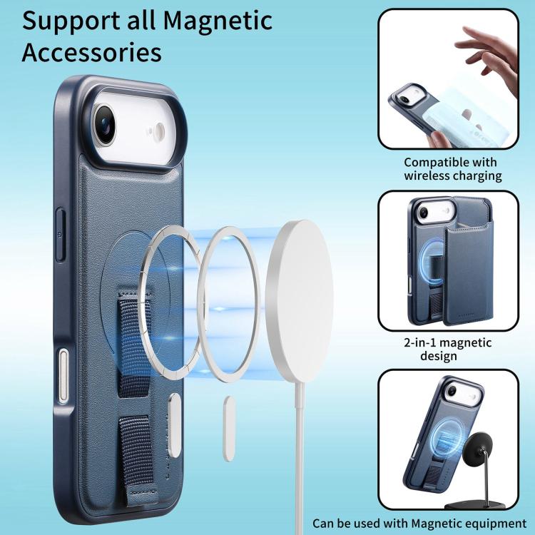 Funda de cuero MagSafe con correa de agarre para el dedo para iPhone Air (azul)