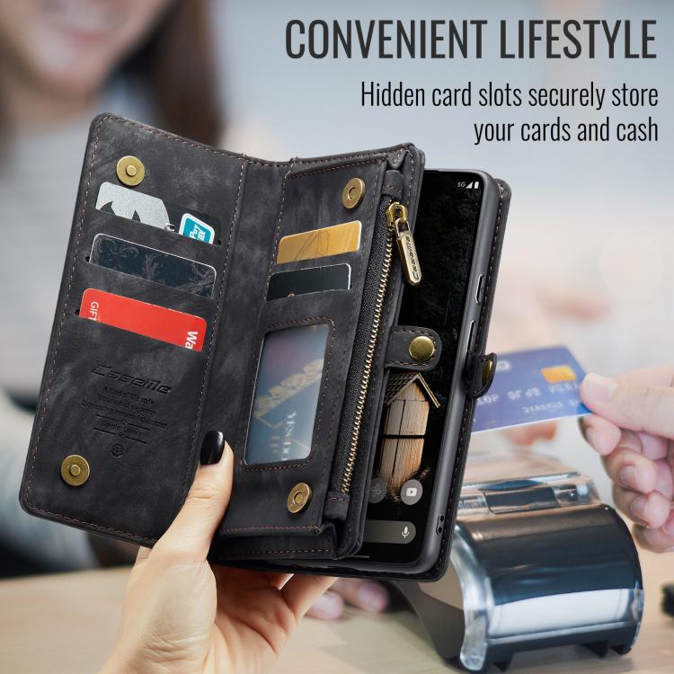 Funda de Cuero Multifuncional Desmontable Caseme 008 para Google Pixel 9A (Negra)