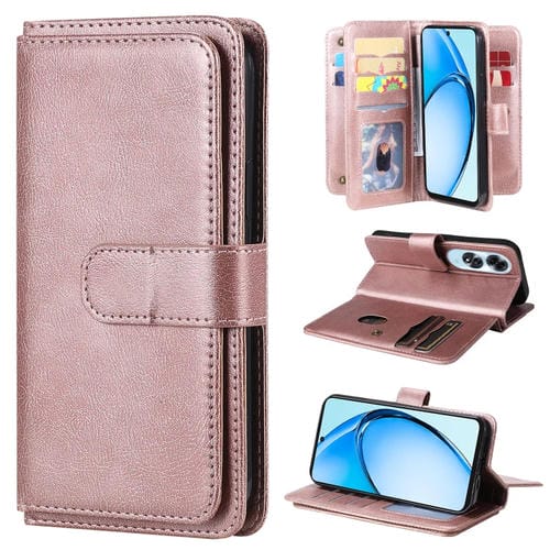 Funda de Cuero para Teléfono con 10 Ranuras para Tarjetas y Billetera Multifunción para Oppo A60 4G (Oro Rosa)