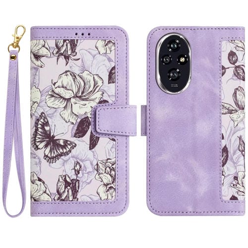 Funda de Cuero para Teléfono Honor 200 con Diseño Floral y Cordón (Morado Claro)