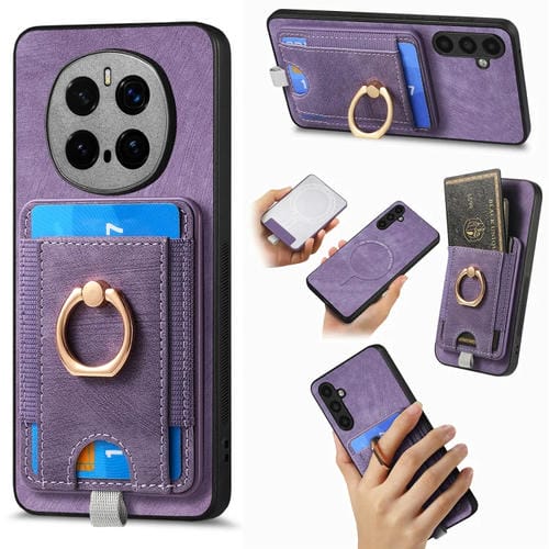 Funda de Cuero para Honor Magic 7 Pro con Tarjetero Magnético Divisible Retro (Morado)
