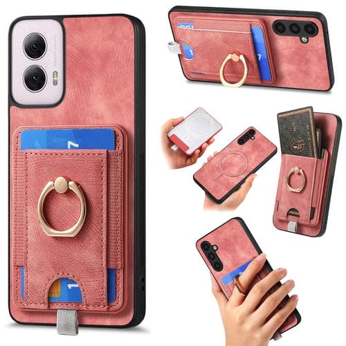 Funda de Cuero con Tarjetero Magnético Divisible para Motorola Moto G Power 2024 5G (Rosa)