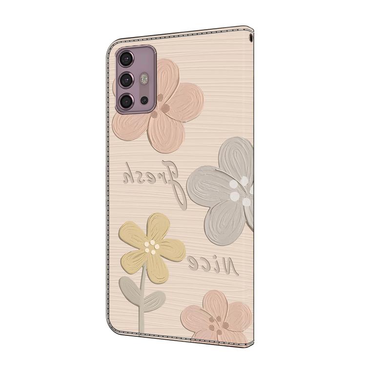 Funda de Cuero Pintada a Mano para Motorola Moto G30 (Flores Beige)