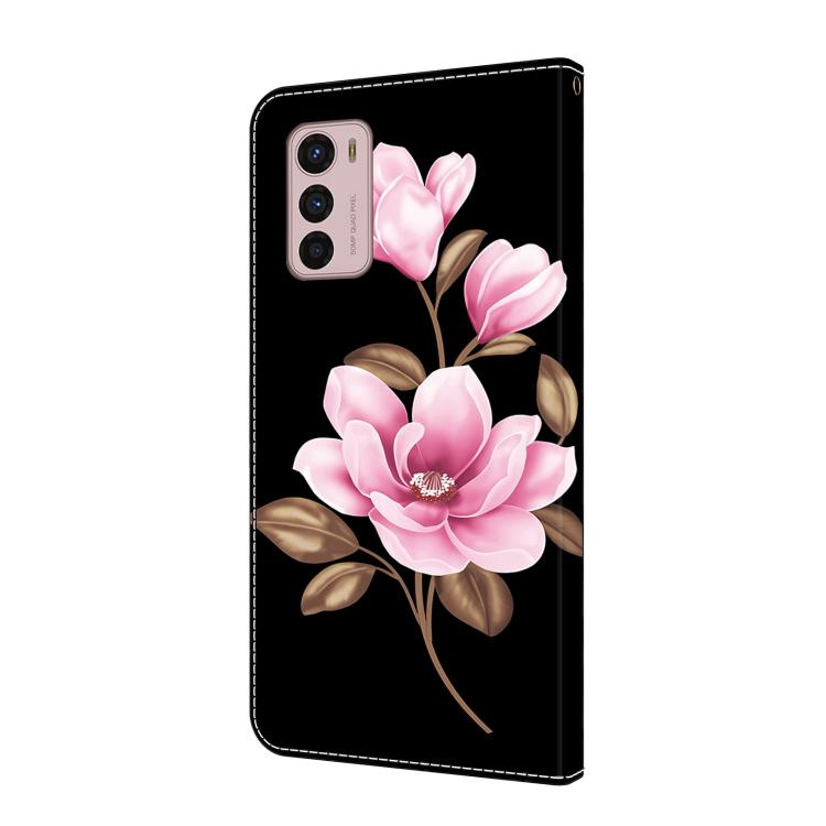 Funda de Cuero pintada a mano para Motorola Moto G42 (Flores Negras)