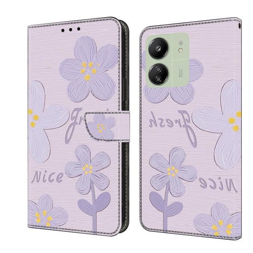 Funda de Cuero Pintada a Mano para Redmi 14C 4G (Flores de Color Morado Oscuro)