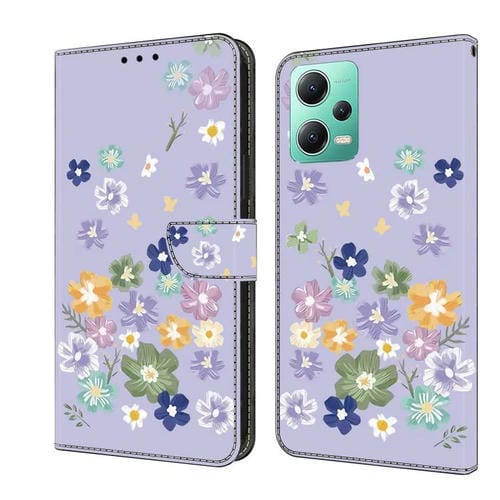 Funda de Cuero Pintada a Mano para Redmi Note 12 5G (Floral Morado)