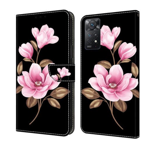 Funda de Cuero Pintada a Mano para Redmi Note 12 Pro 4G / 11 Pro (Flores Negras)