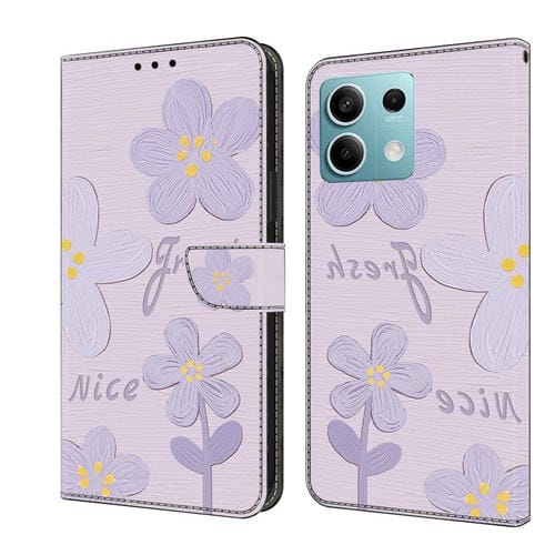 Funda de Cuero Pintada a Mano para Redmi Note 13 5G (Flores de Color Morado Oscuro)