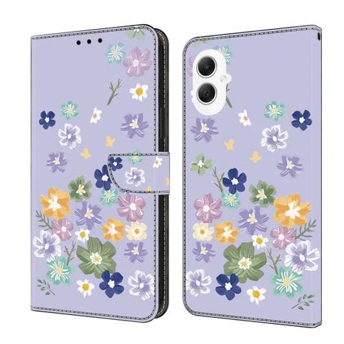 Funda de Cuero Samsung Galaxy A05 Pintada a Mano Floral (Morado)