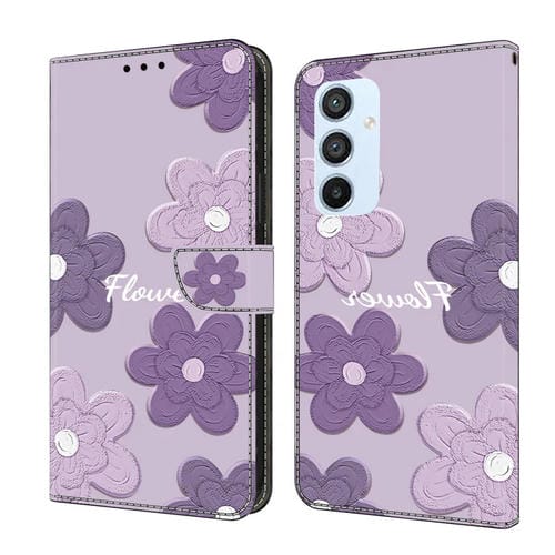 Funda de Cuero Samsung Galaxy A54 5G Pintada a Mano Flores (Morado Oscuro)