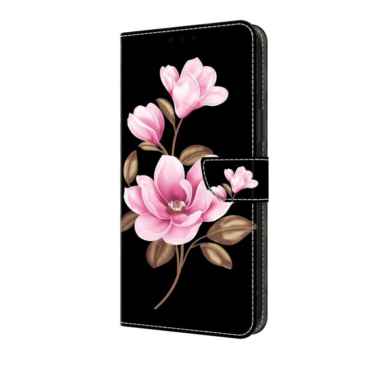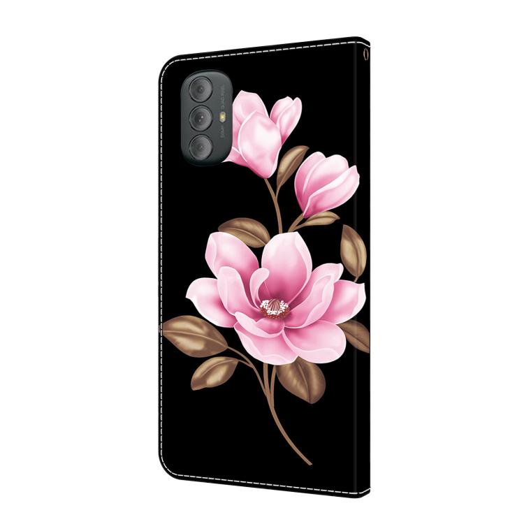 Funda de Cuero Pintada a Mano para Motorola Moto G Power 2022 (Flores Negras)