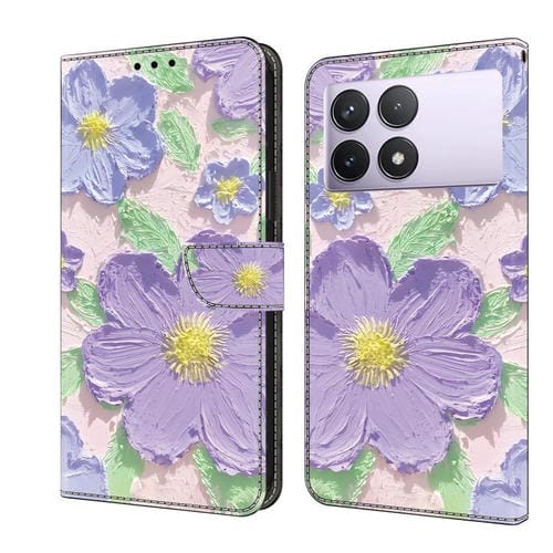 Funda de Cuero Pintada al Óleo para Redmi K70E (Flores Moradas)