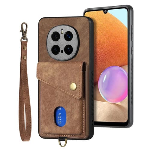 Funda de Cuero Plegable con Correa y Tarjetero para Honor Magic7 Pro (Marrón)