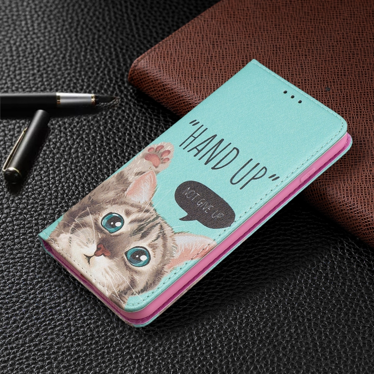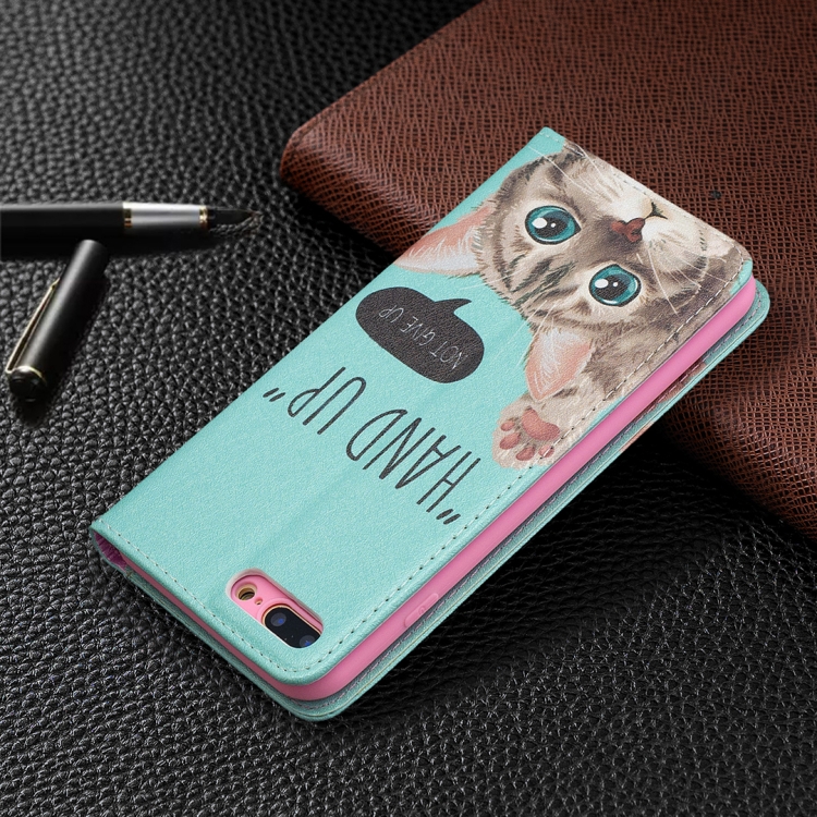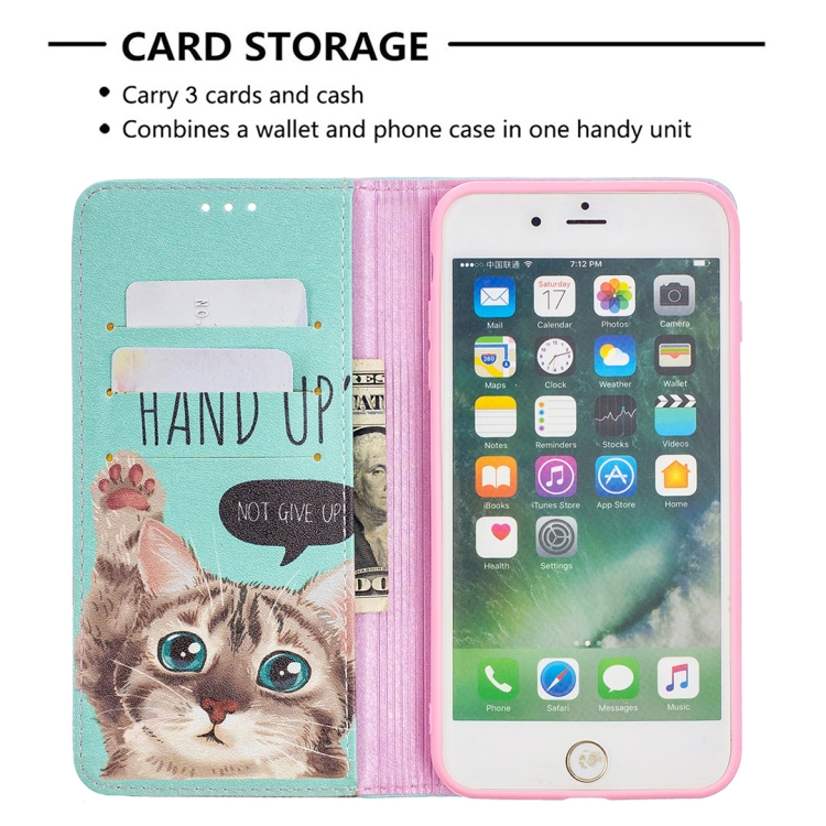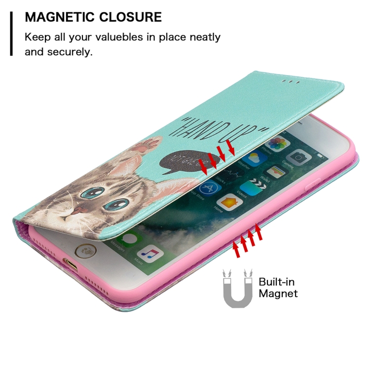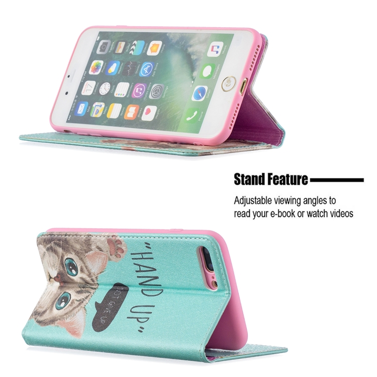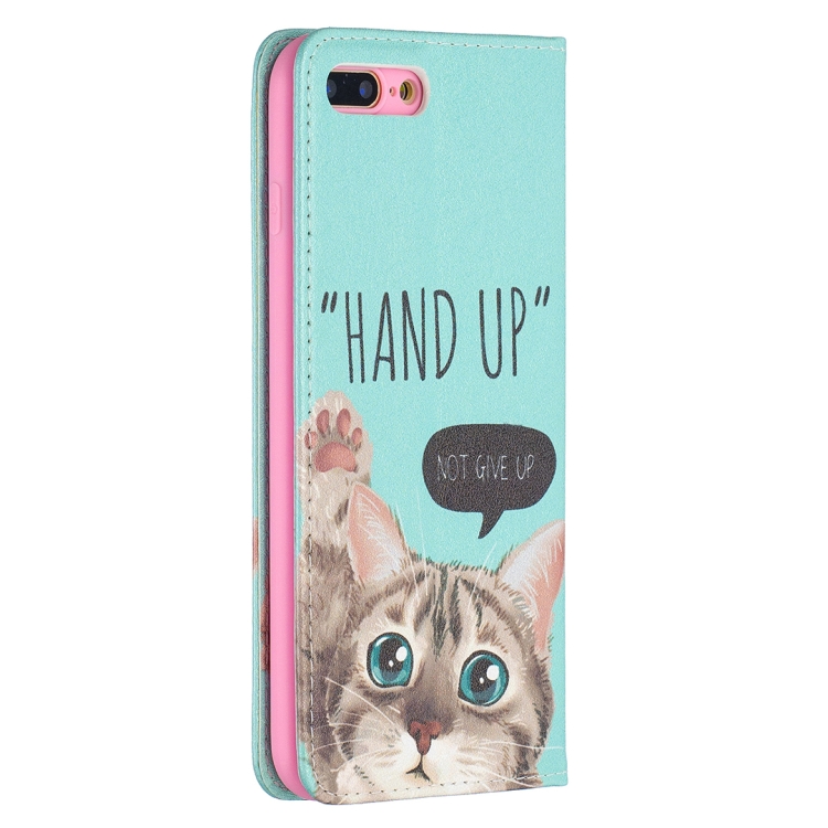 Funda de Cuero Pu con Tapa Horizontal Magnética Invisible para iPhone 8 Plus y 7 Plus (Gato)
