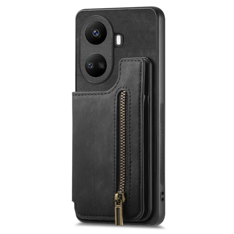 Funda de Cuero Retro con Cremallera para Huawei Nova 10 Se (Negra)
