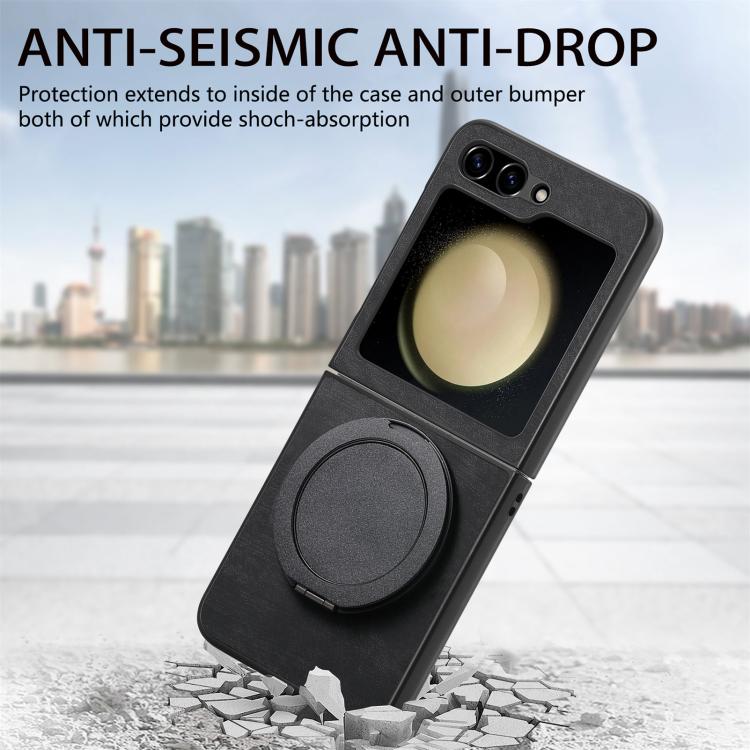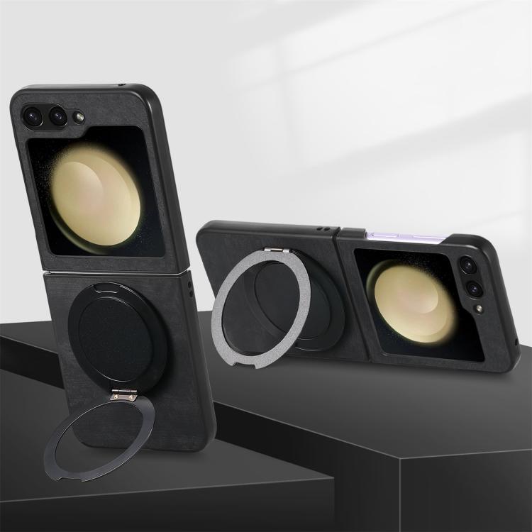 Funda de cuero retro con soporte giratorio para Samsung Galaxy Z Flip5 5G (negro)
