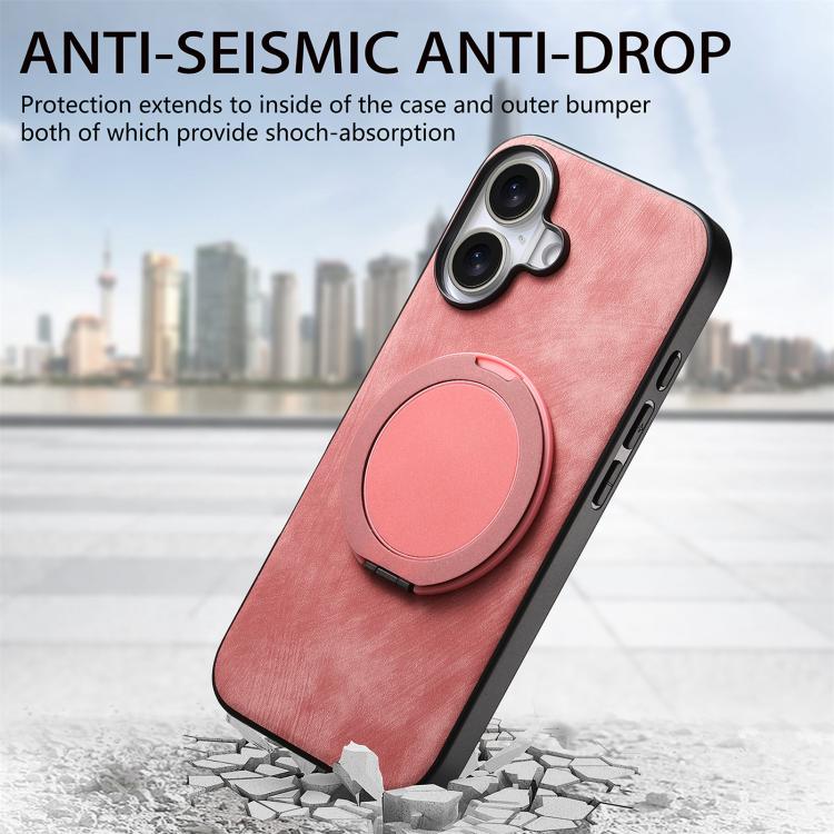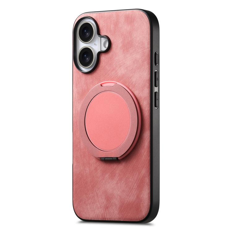 Funda de cuero retro con soporte giratorio redondo para iPhone 17 (rosa)