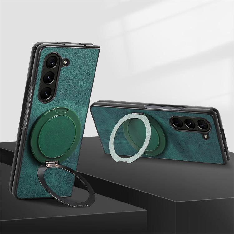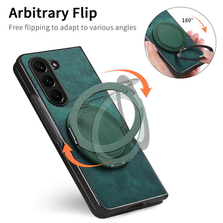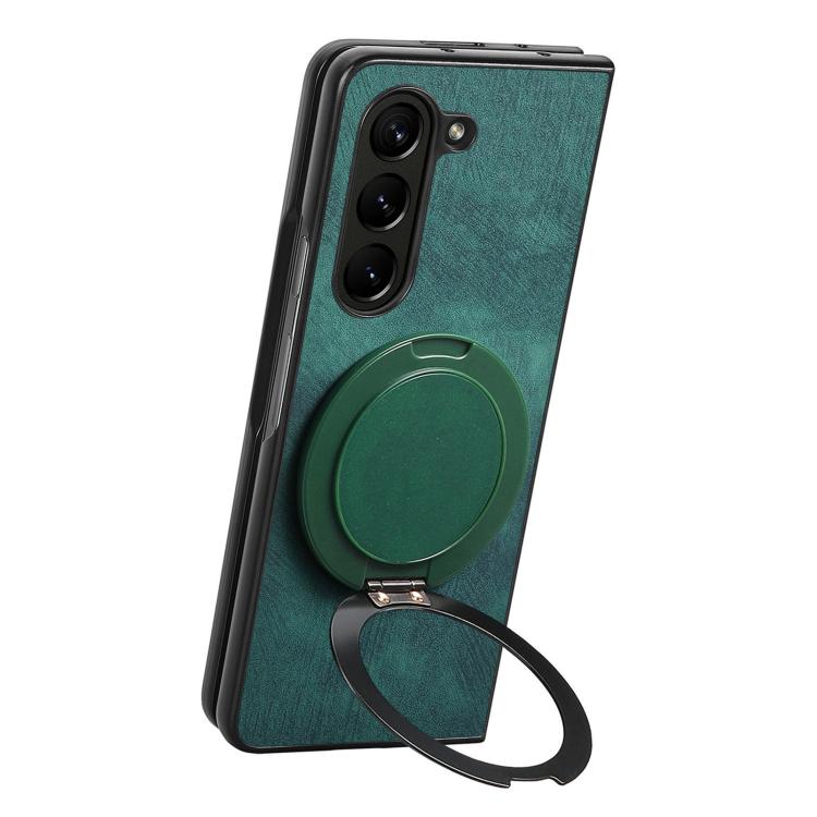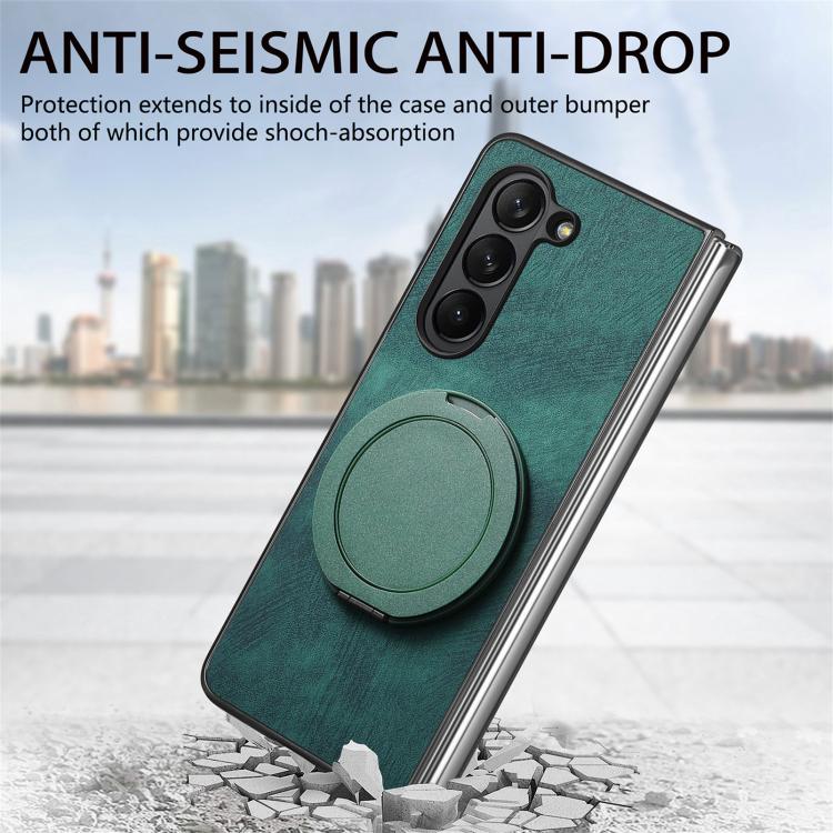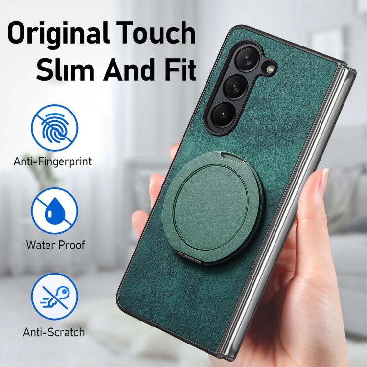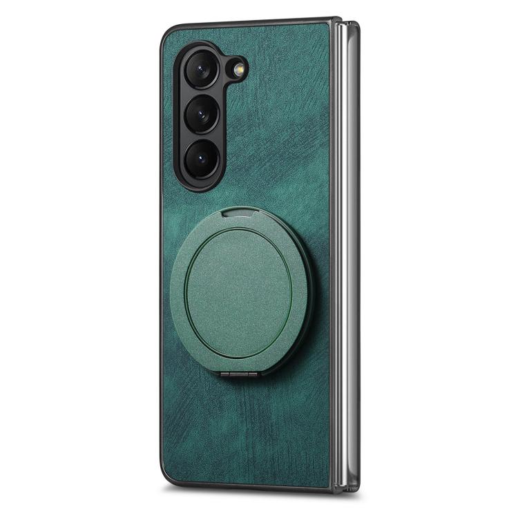 Funda de cuero retro con soporte giratorio redondo para Samsung Galaxy Z Fold6 (verde)