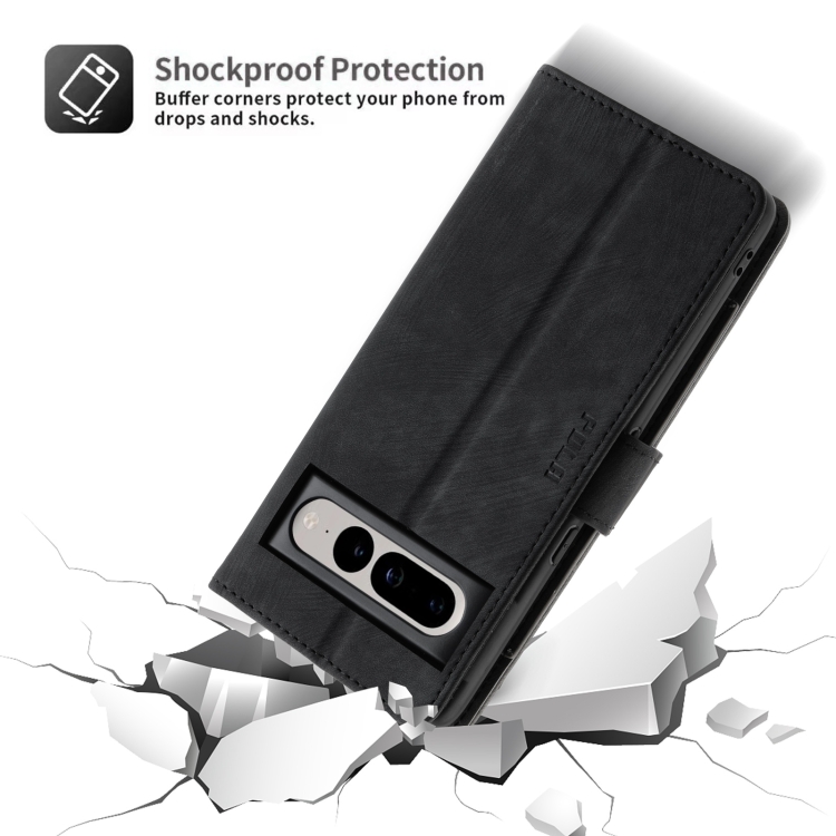 Funda de Cuero Rfid con Cremallera para Google Pixel 7 Pro Pola (Gris y Negro)
