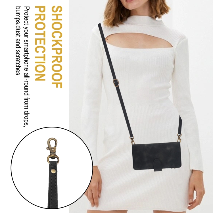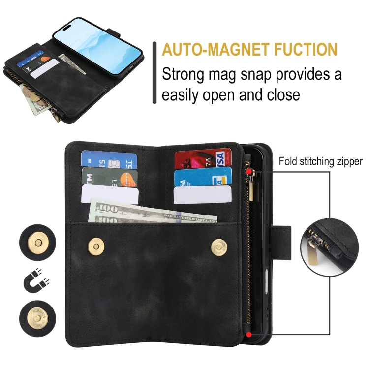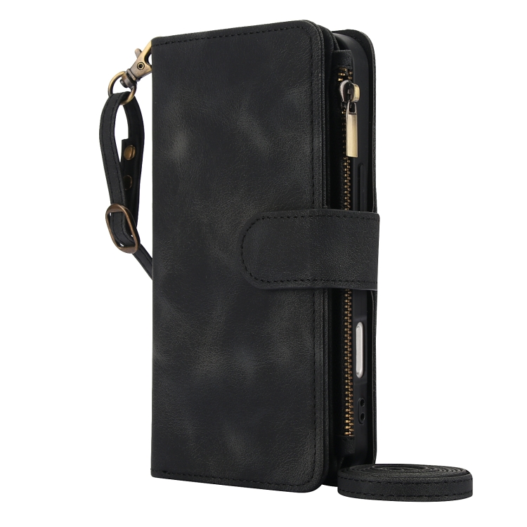 Funda de Cuero Rfid con Cremallera para iPhone 16 Dream con 9 Tarjetas y Cordón (Negro)