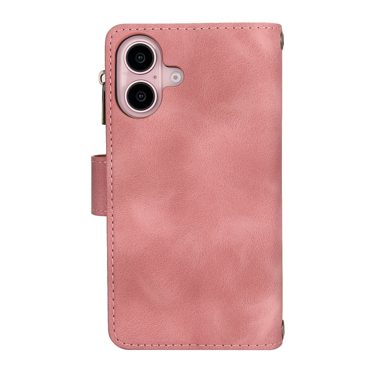 Funda de Cuero Rfid con Cremallera para iPhone 16 Dream con 9 Tarjetas y Cordón (Oro Rosa)