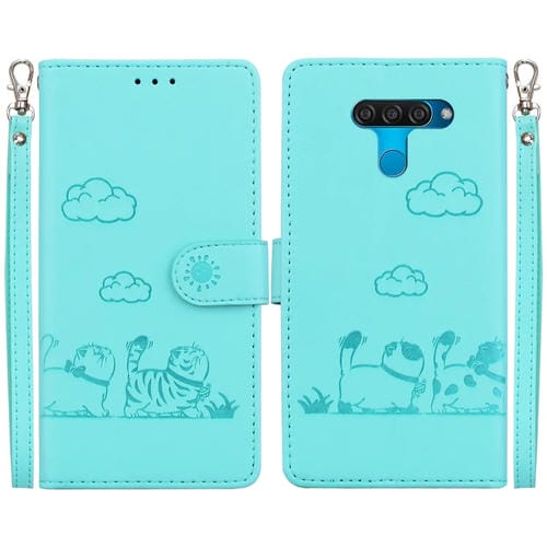 Funda de Cuero Rfid para LG K50/Q60 con Diseño de Gatos (Verde)