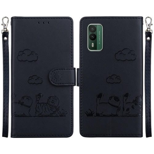 Funda de Cuero Rfid para Nokia Xr21 con Diseño de Gatos (Negra)