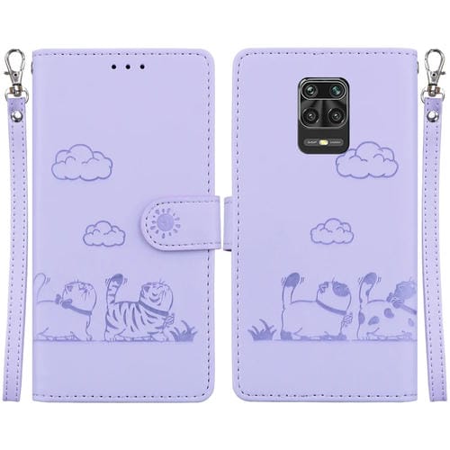 Funda de Cuero Rfid con Diseño de Gatos para Redmi Note 9 Pro (Morada)