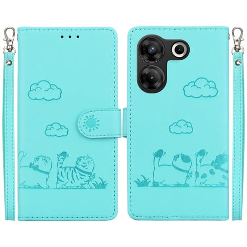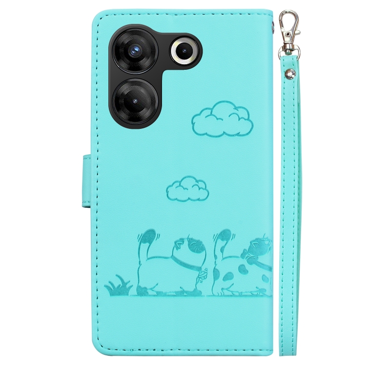 Funda de Cuero Rfid para Tecno Camon 20 Pro 5G con Diseño de Gatos (Verde)