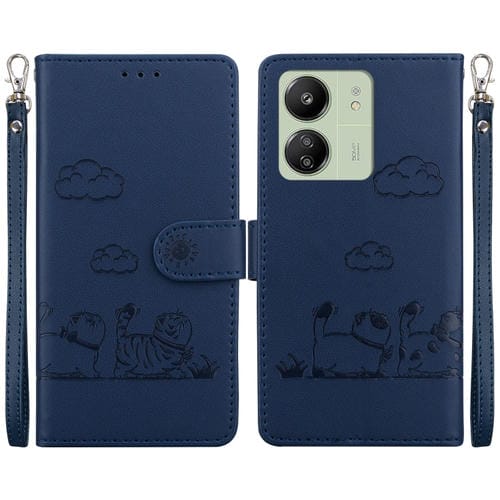 Funda de Cuero Rfid con Diseño de Gatos para Xiaomi Poco C65 4G (Azul)