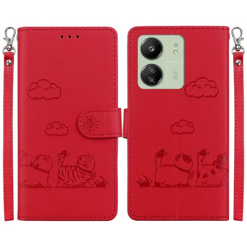 Funda de Cuero Rfid con Diseño de Gatos para Xiaomi Poco C65 4G (Roja)