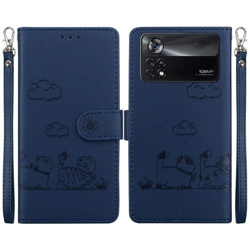 Funda de Cuero Rfid con Diseño de Gatos para Xiaomi Poco X4 Pro 5G (Azul)