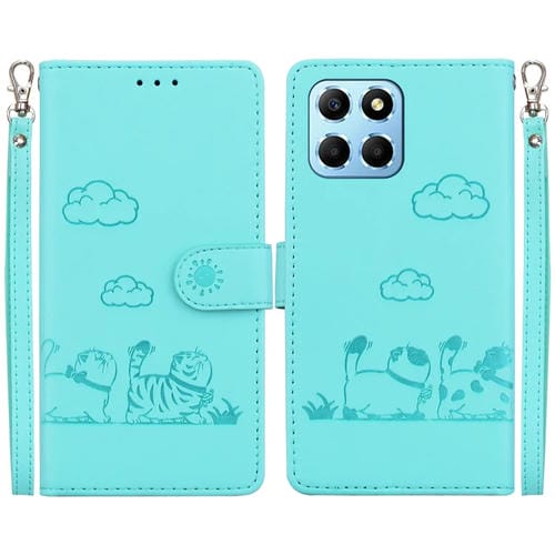 Funda de Cuero Rfid para Honor X8 5G con Diseño de Gatos (Verde)