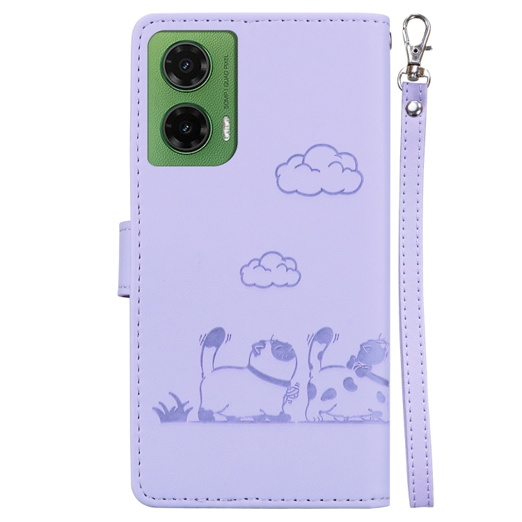 Funda de Cuero Rfid para Motorola Moto G35 con Diseño de Gatos (Morado)