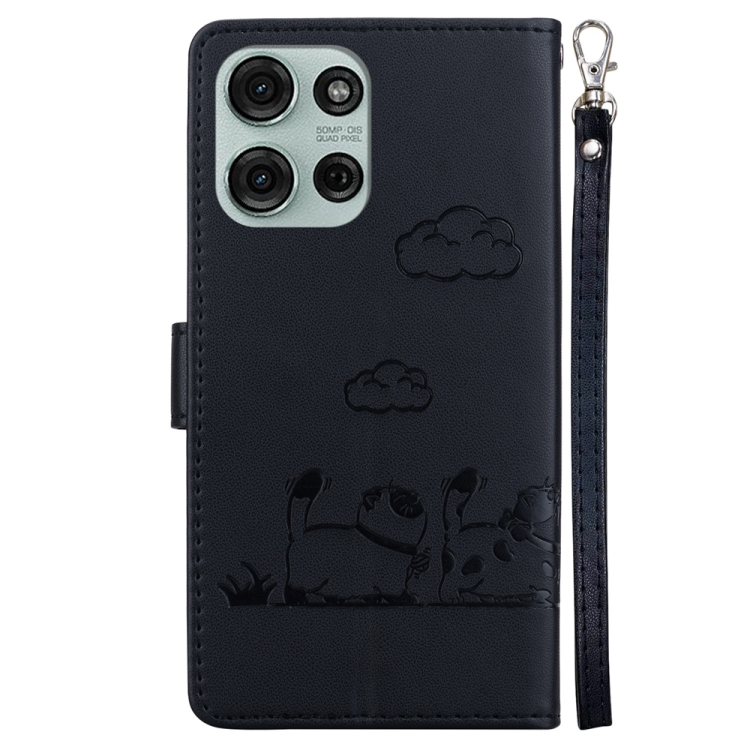Funda de Cuero Rfid para Motorola Moto G75 5G con Diseño de Gatos (Negra)
